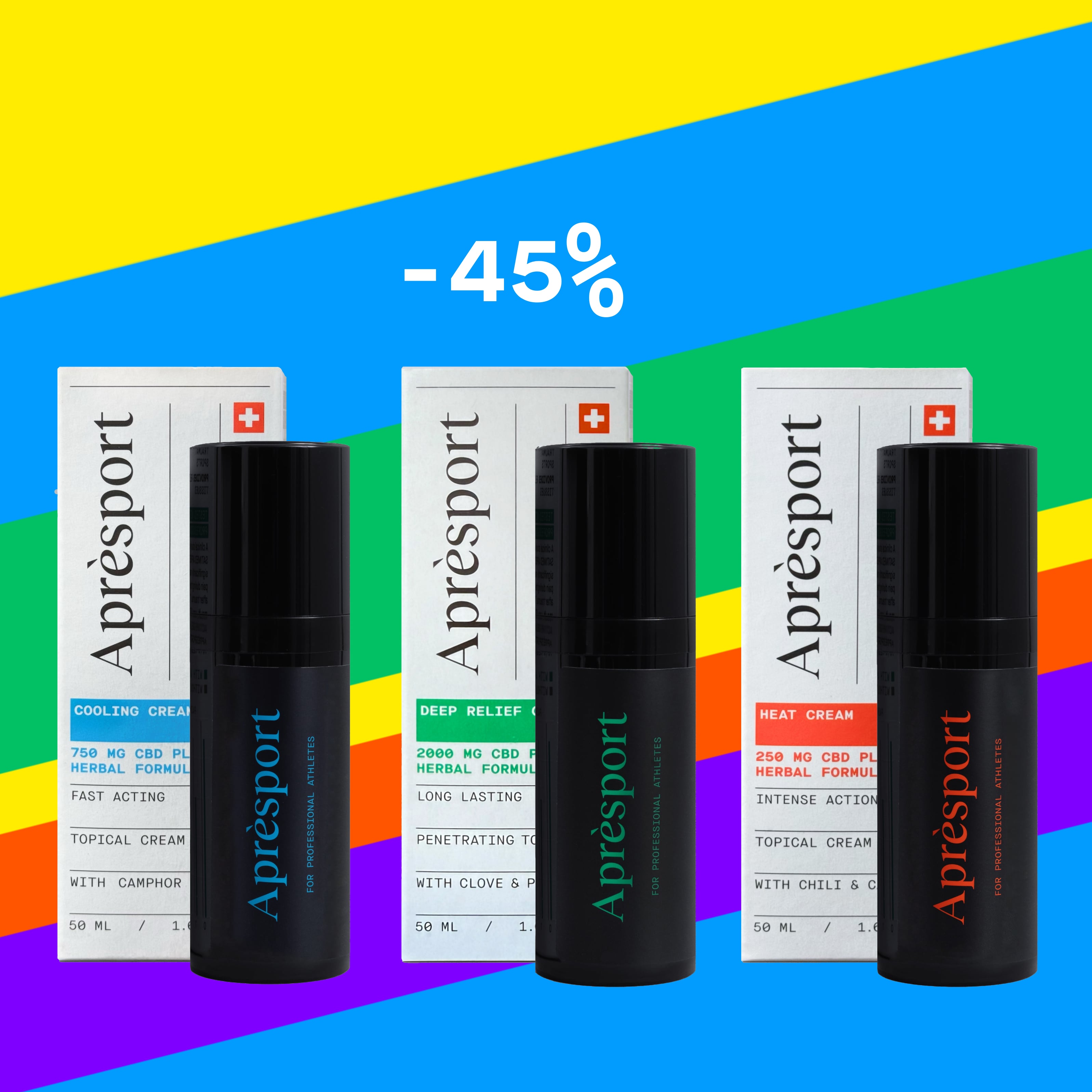 Consumer study demonstrated that SATIMED APRÈSPORT™️ products help to relieve unpleasant symptoms during the first week of recovery after trauma. To achieve the best result, use Aprèsport Deep Relief Active Gel in combination with Aprèsport Cooling Cream and Aprèsport Heat Cream.