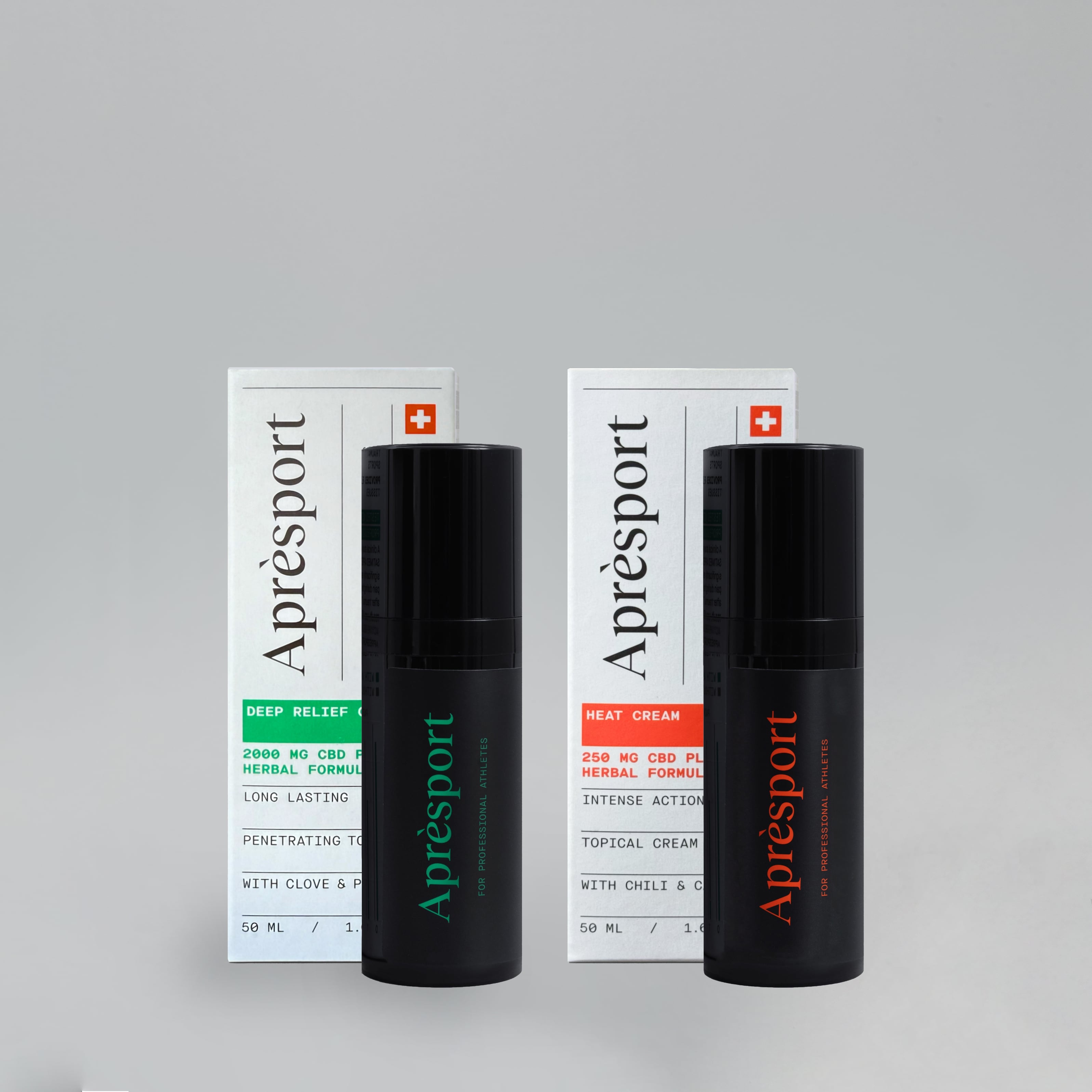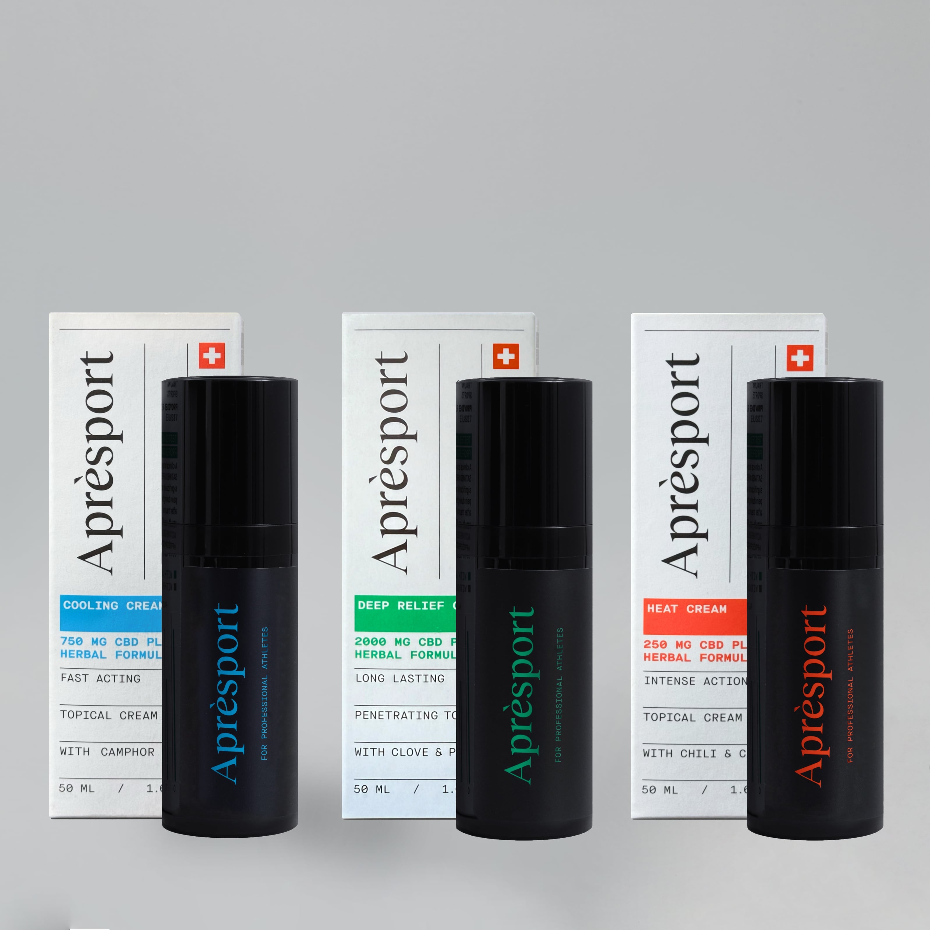 Les gels et crèmes Aprèsport sont conçus pour soulager les douleurs musculaires et articulaires, favoriser la récupération, prévenir les blessures et améliorer les performances sportives. Ce sont les meilleures solutions de récupération pour les athlètes qui cherchent à améliorer leurs résultats à l'entraînement et en compétition. Nous ne fournissons que des extraits naturels de haute qualité et nos produits de récupération infusés au CBD sont testés en laboratoire, certifiés et sûrs pour une utilisation dans le sport. Les gels de récupération Aprèsport ne contiennent pas de THC et sont utilisés par des athlètes professionnels et olympiques. Les crèmes et gels musculaires spécialisés au CBD d'Aprèsport sont fabriqués à partir d'ingrédients actifs naturels et de notre propre formule brevetée à base de plantes, le CBD Plus. Notre gel le plus efficace et le meilleur pour la récupération musculaire est le Gel Aprèsport Deep Relief - le plus puissant de la gamme, le meilleur pour la récupération à long terme et l'application nocturne. Le gel Aprèsport Deep Relief soulage et régénère les tissus mous. La meilleure crème rafraîchissante de notre gamme est la Crème rafraîchissante Aprèsport au camphre et à l'arnica. La meilleure crème rafraîchissante de notre gamme est la crème rafraîchissante Aprèsport au camphre et à l'arnica. Elle ne brûle pas la peau, pénètre dans les tissus musculaires souples et se réchauffe en même temps que le mouvement. La crème chauffante Aprèsport améliore la circulation sanguine dans les muscles et les articulations.
