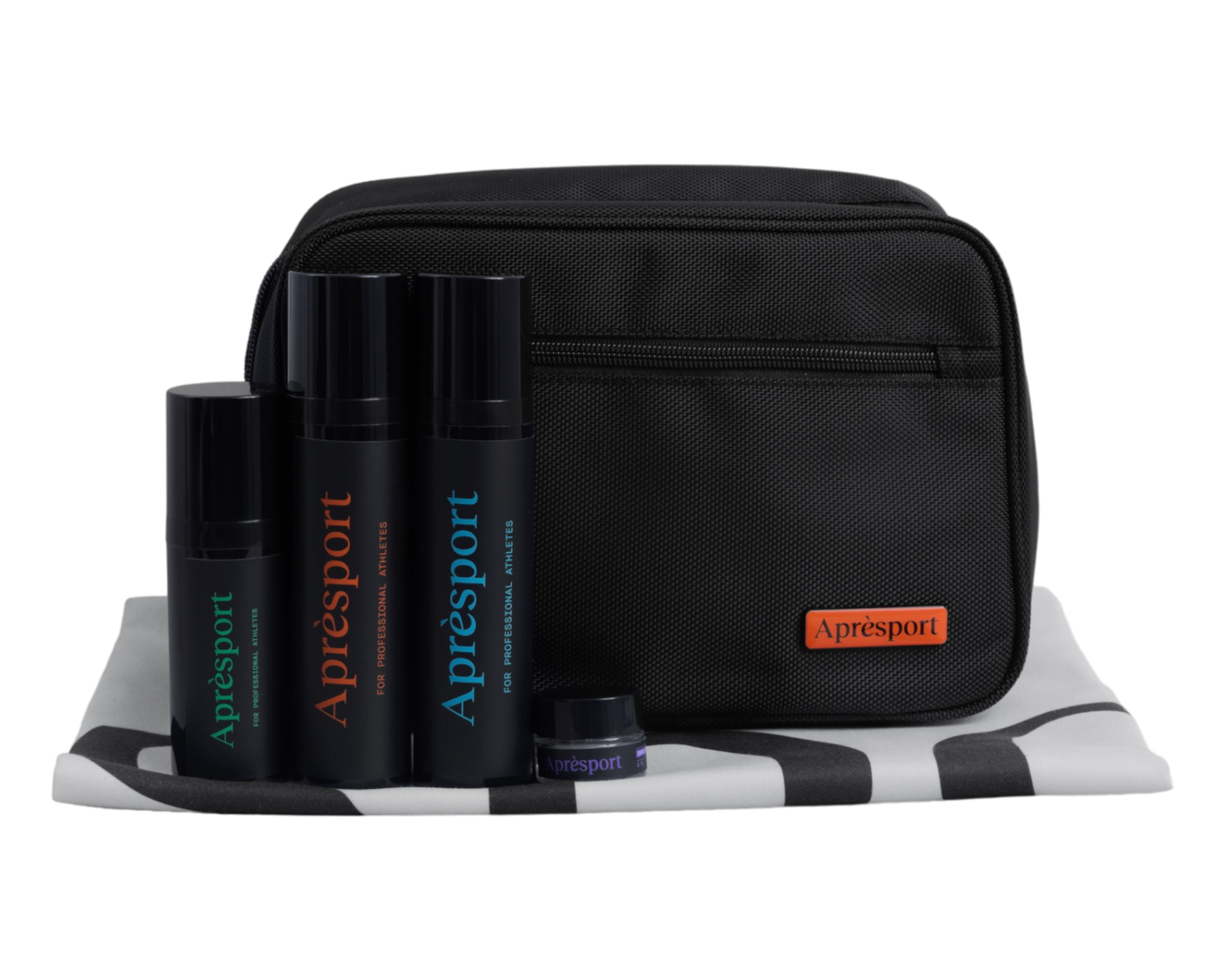 Pirkdami visų 4 produktų rinkinį, gausite originalią Apresport kosmetinę ir rankšluostį.